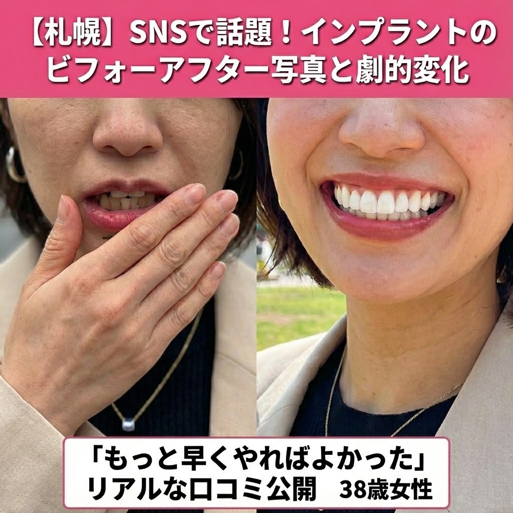今、札幌の美意識高い女性たちの間で、**「美容投資としてのインプラント」**がSNSを中心に話題になっているのをご存知でしょうか?